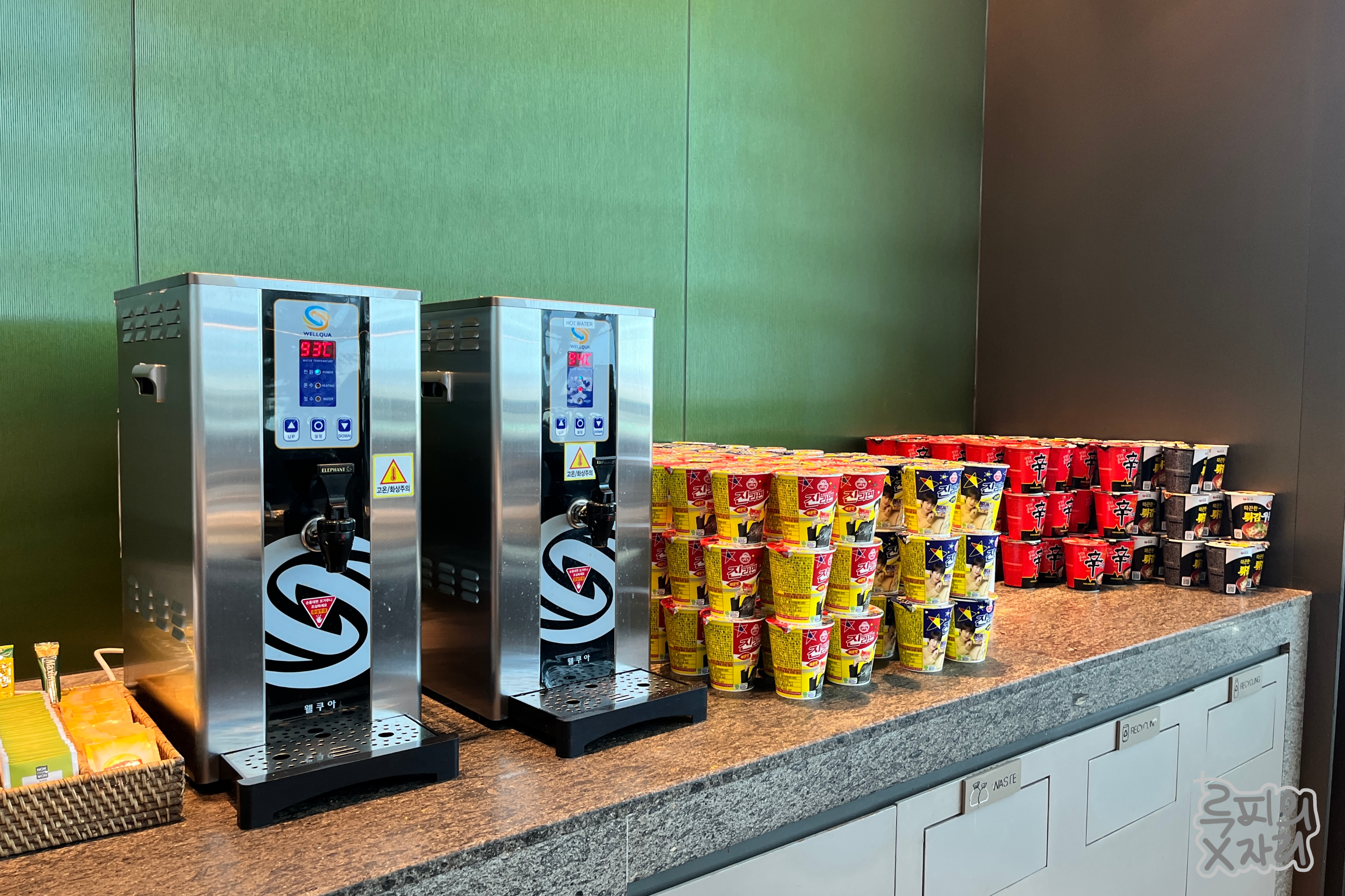요즘은 해외에서도 필수인 컵라면 존. 커피와 주스,