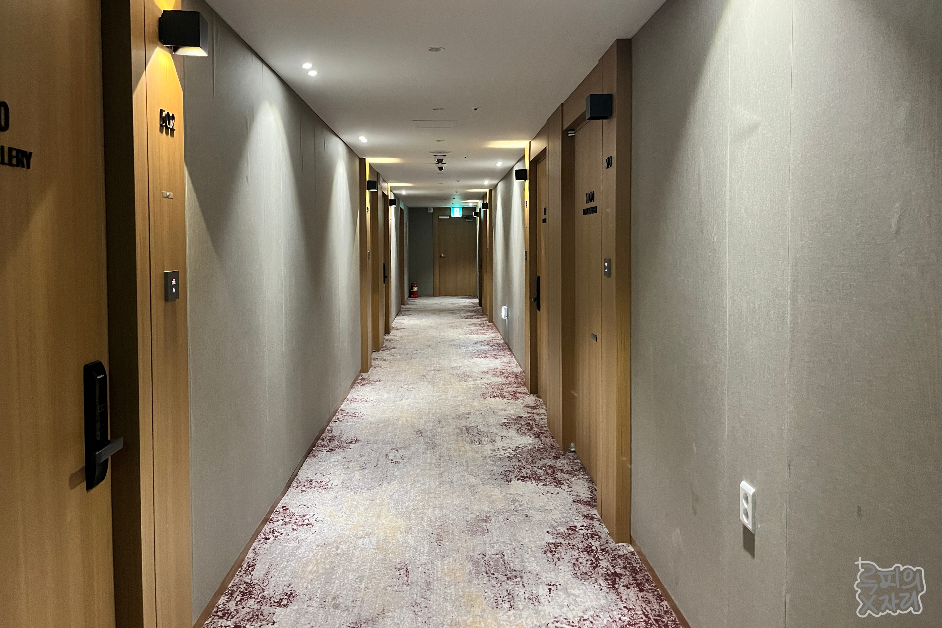 매우 고급스러운 복도입니다. 누오보 호텔은 계명대 근처에 있어 주변에 음식점과 아웃렛까지 있습니다. 대구의 중심부는 아니라 번화가는 아니지만 출장 호텔로는 제격입니다.