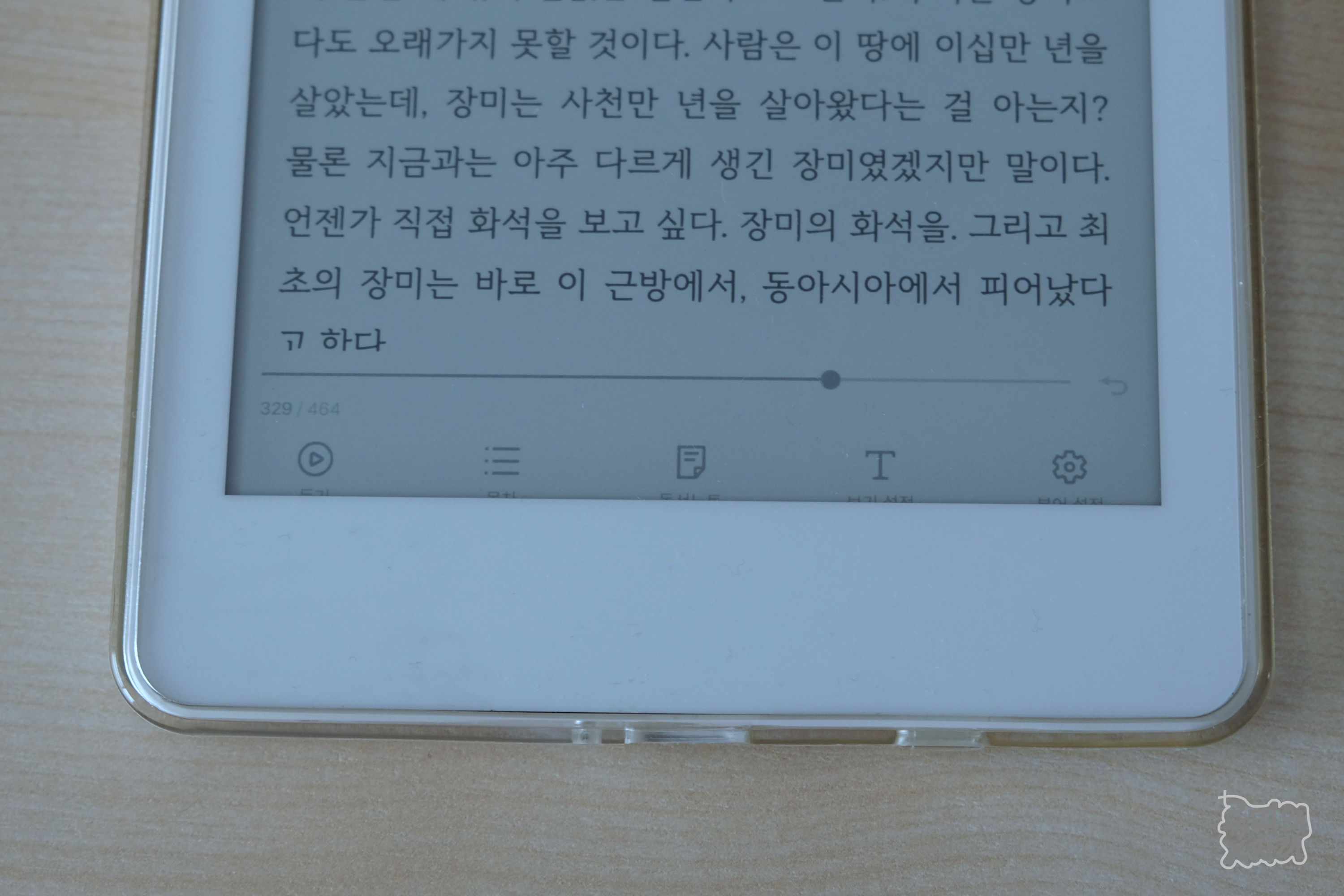 총평을 하자면 디스플레이의 해상도 및 조명 등 품질이 좋고 국내 제품이기에 믿음이 간다. 어쩐지 단점들이 더 많이 작성되었지만 사실 책을 들고 읽는 것보다는 여러 면에서 훨씬 낫다. 물리 버튼이 없는 단점이 있다고 해도 실제 책을 들고 읽을 때와 비교하면 책장 넘기는 게 더 귀찮은 일(가끔 화면 터치하다가 형광펜 칠해질 땐 화가 나긴 한다)이니말이다. 전자책을 사기 전에 엄청 많은 제품들을 만져보며 비교했었는데 결론은 나의 선택이 옳았다고 본다. 사실 오닉스 페이지가 1순위이긴 했는데 중국 제품인 데다가 뒤에 각인을 도저히 봐줄 수가 없었다 ㅋㅋㅋ 직구하면 저렴한데 유통비를 10만 원씩 받는 것도 오버 같았고.
