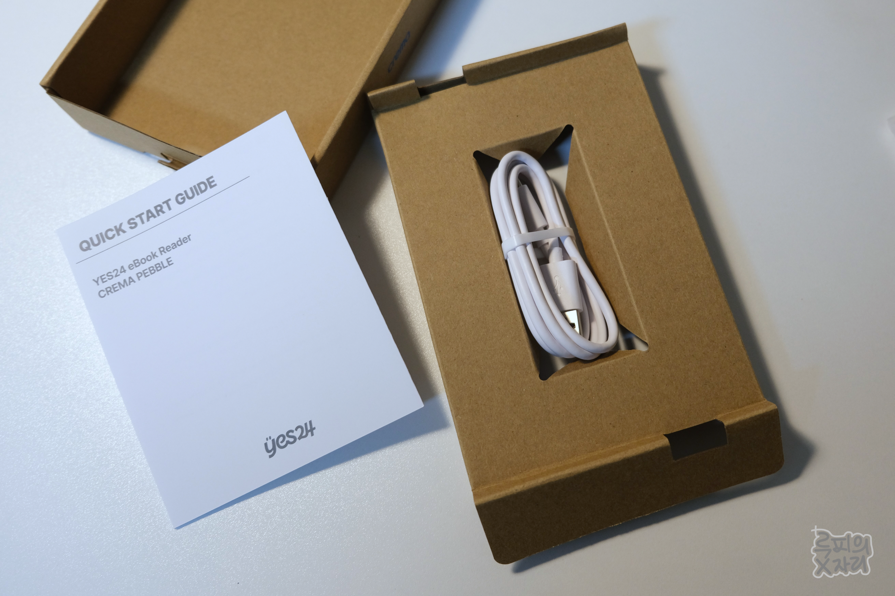 크레마 페블의 아래에는 매뉴얼과 USB케이블이 있다. C to C면 좋으련만 A to C 케이블이.