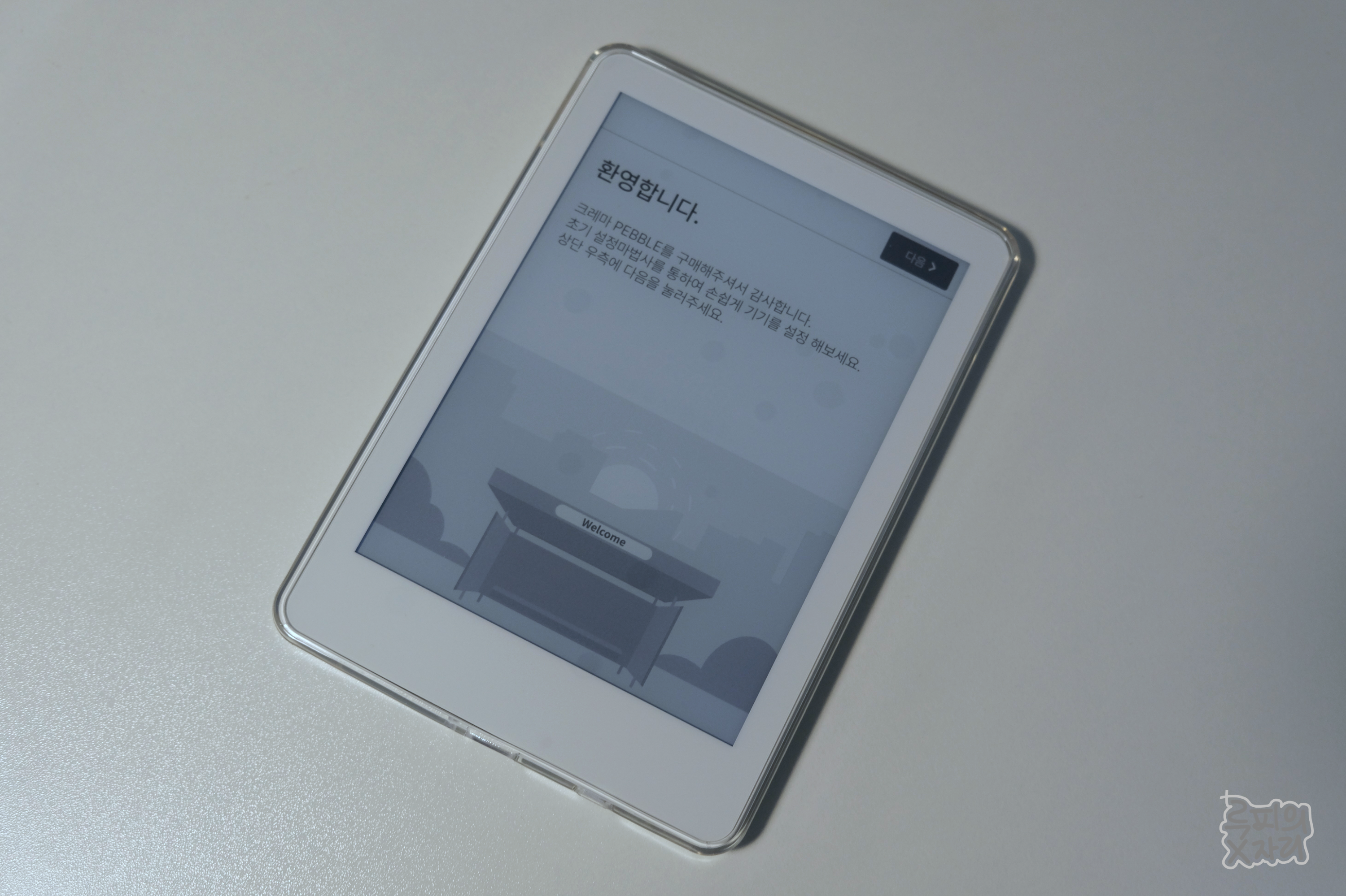 오 벌써 예쁘다. 전자잉크 디스플레이답게 화면이 켜져 있다.